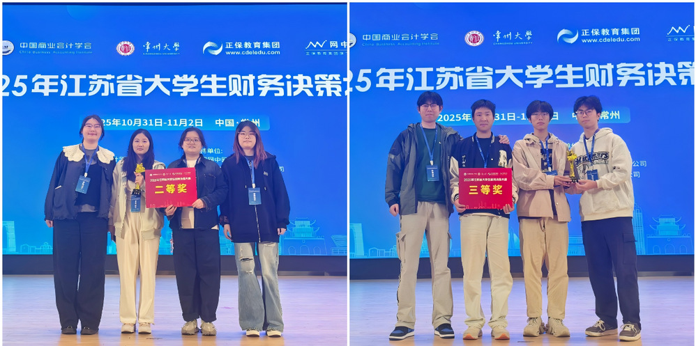 近日,由中国商业会计学会主办的2025年第十三届“网中网杯”财务决策大赛江苏省赛圆满落幕。学院两支参赛队伍凭借扎实的专业功底、高效的团队协作与精准的决策能力脱颖而出,最终斩获省级二等奖、三等奖各1项。