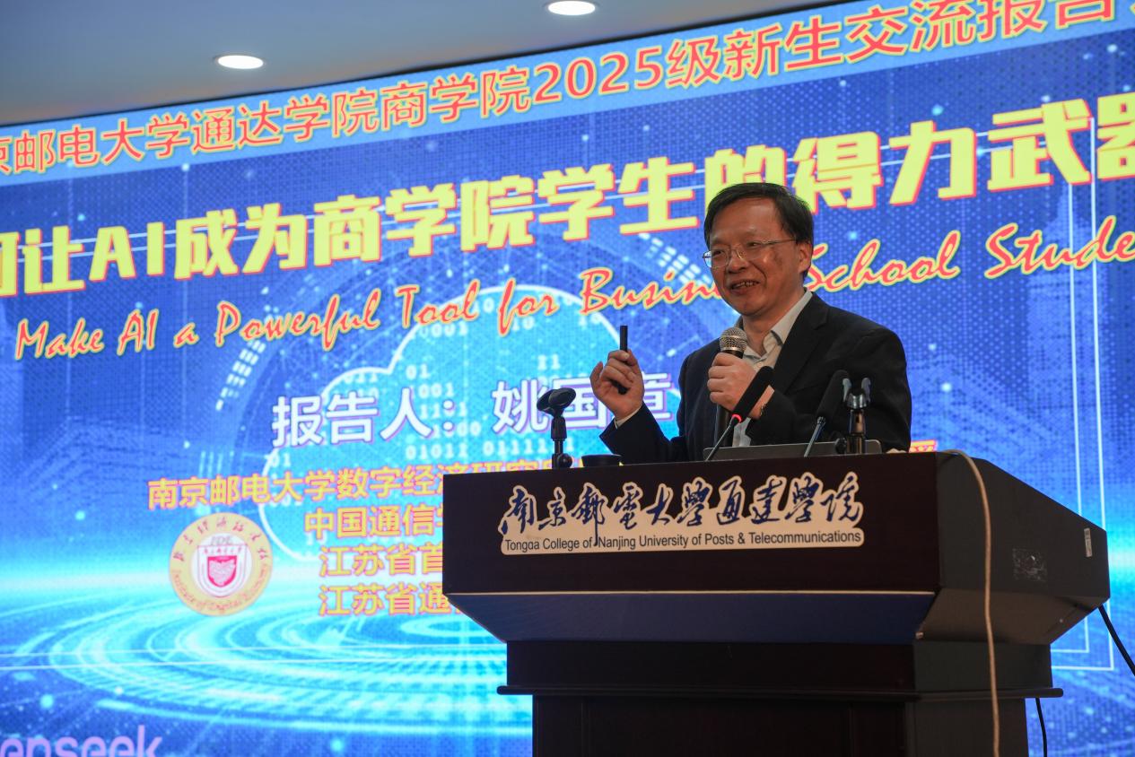 10月29日,南京邮电大学姚国章教授应邀作题为“如何让AI成为商学院学生的得力武器”的学术报告。全院350余位师生莅会聆听,报告会由商学院院长闫志龙主持。