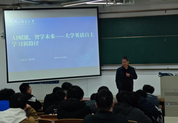 11月26日下午,通达大讲堂在扬教3306举行。本次讲座特邀南京邮电大学徐志敏副教授担任主讲嘉宾,以“AI赋能 智学未来——大学英语自主学习新途径”为主题。讲座由基础教学部老师主持,全院共200余名师生参加活动。