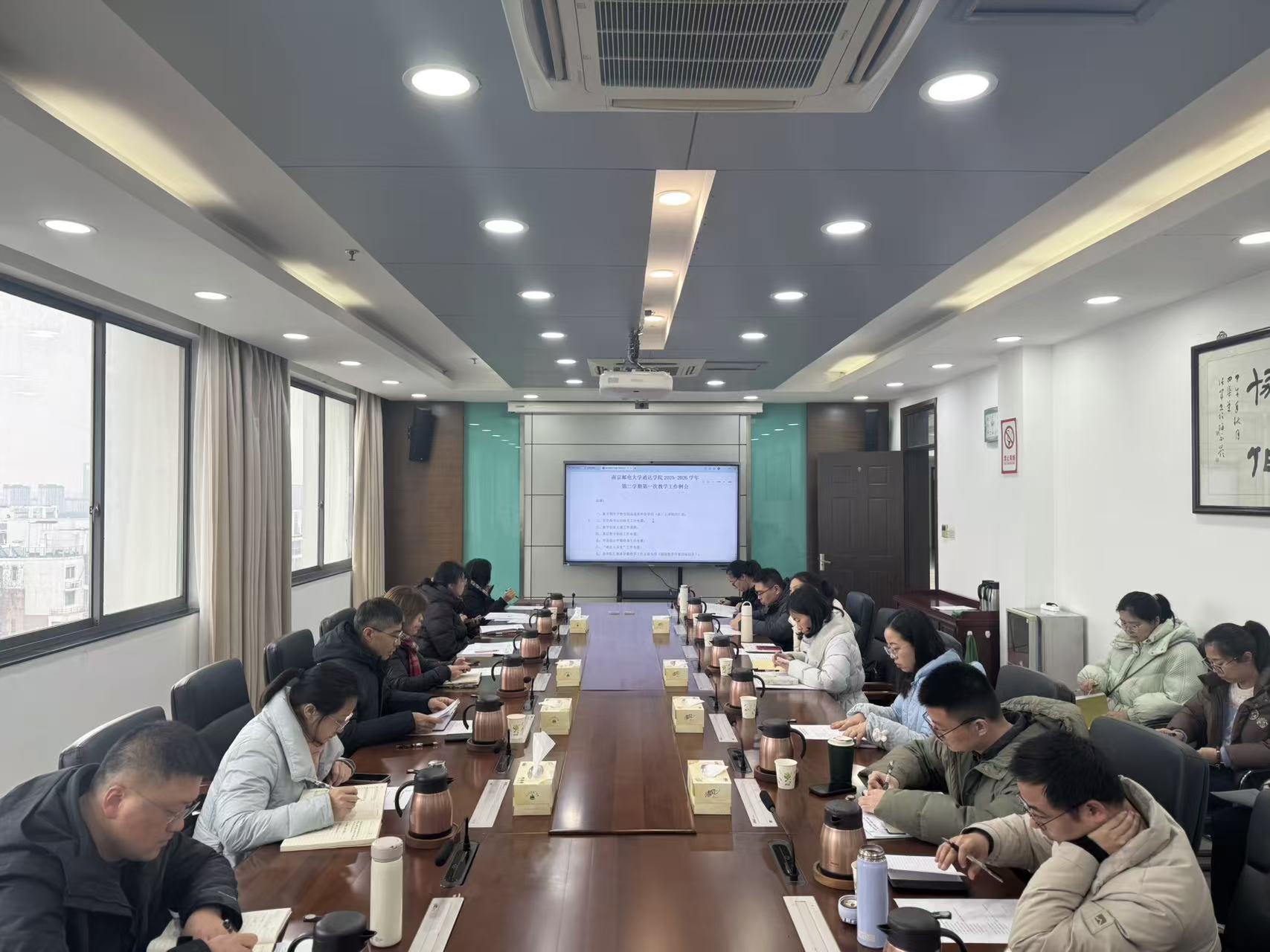 会议学习了近期国家和江苏省出台的有关重要文件和相关会议精神,教务处相关负责人对新学期开学教学情况、开学教学运行、2026届毕业生相关工作、2024-2025级学生学习分、教学创新大赛、基层教学组织活动、毕业设计、“通达大讲堂”以及专业课程建设、学科竞赛等工作进行通报和布置。会议就贯彻落实有关文件会议精神和2026年重点工作进行了研讨,各学院围绕教学年度目标任务汇报了本学期教学工作主要安排。